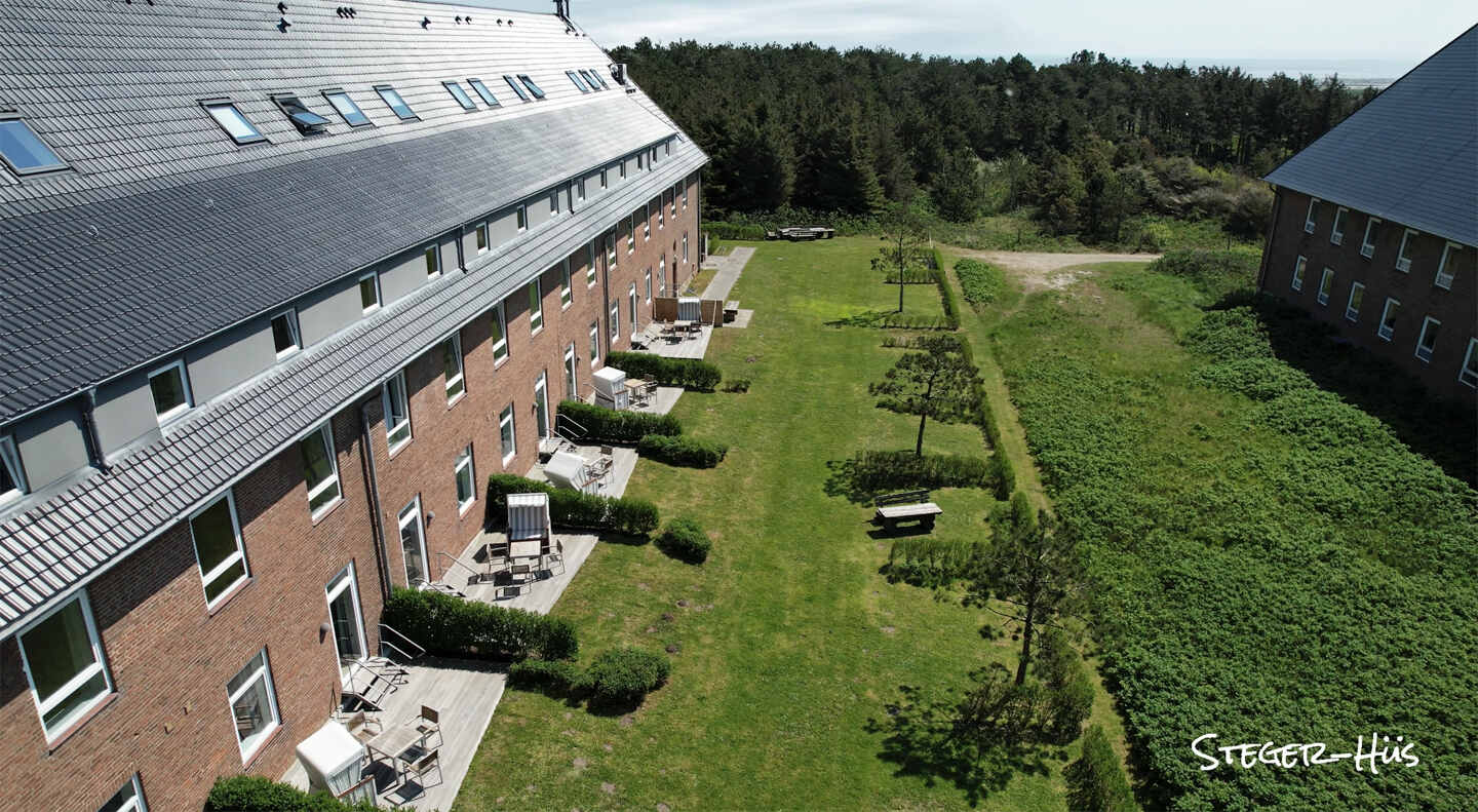 … und unsere Anlage: Wir erwarten Sie in Rantum, in der geografischen Mitte Sylts. Hier bietet Ihnen unser modern eingerichtetes Apartmenthaus in ruhiger Lage einen überaus komfortablen Ausgangspunkt zur Erkundung der nördlichsten Insel Deutschlands. Zu den Annehmlichkeiten rund ums Steger-Hüs zählen die Strandkörbe auf dem Gelände, die von Ostern bis Oktober für unsere Gäste bereitstehen.